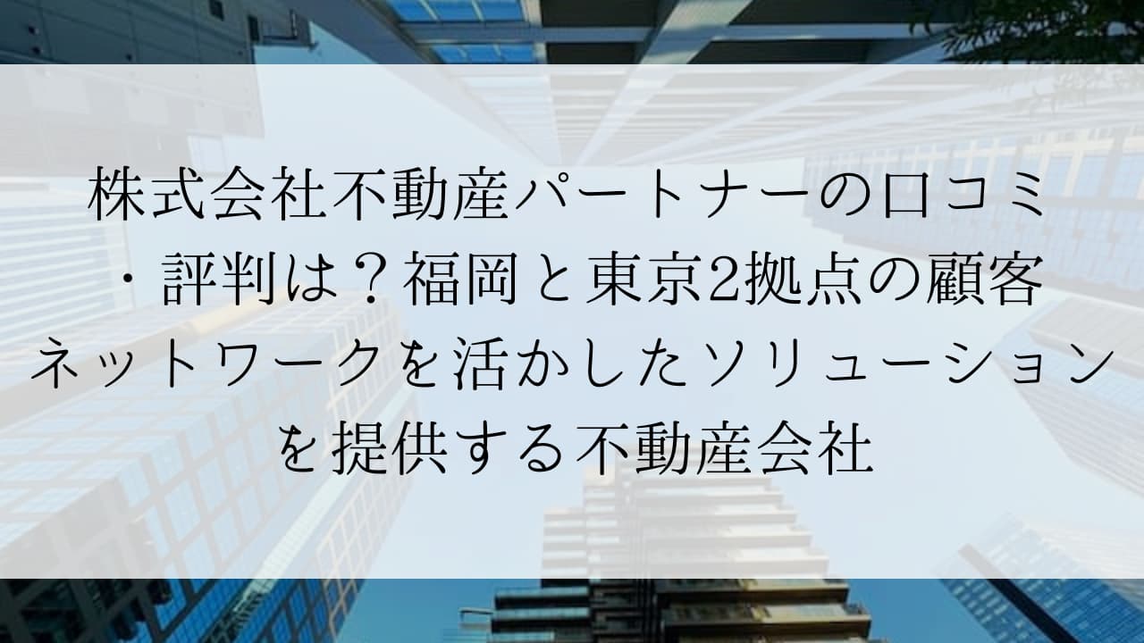 株式会社不動産パートナーの口コミ・評判は?福岡と東京2拠点の顧客ネットワークを活かしたソリューションを提供する不動産会社